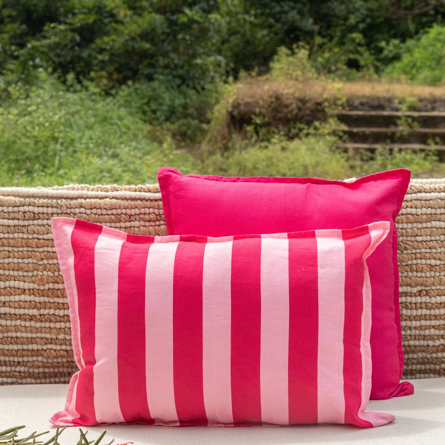 The Pink Stripe Cushion Cover adds a fresh, contemporary touch with its crisp lines and soft pink palette. Designed to pair perfectly with our Tropicasa Collection, it balances tropical motifs with a simple, elegant finish.
