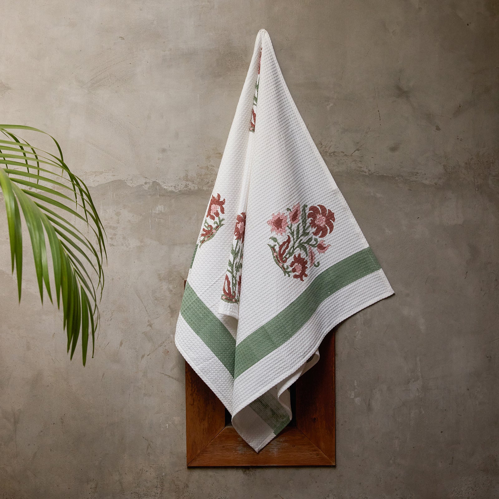 The collection includes curtains, towels, and cushion covers, designed to layer effortlessly through the home adding warmth, movement, and a touch of wild elegance. Verbena is for spaces that embrace colour, craft, and a free-spirited floral sensibility.