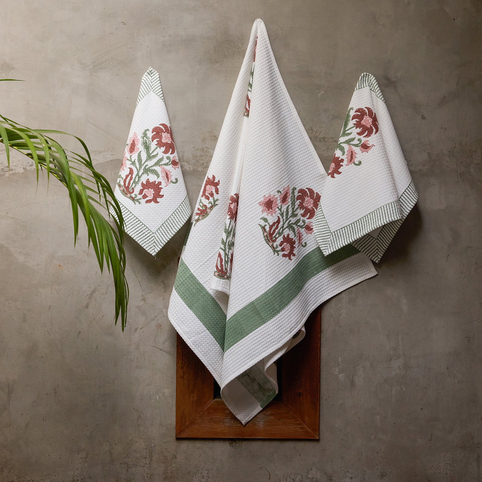 Bold yet beautifully untamed, the Verbena Collection draws inspiration from wildflowers in full bloom. Featuring large-scale floral motifs in striking shades of red and green, the designs feel expressive, organic, and full of lifecel, ebrating the raw beauty of nature rather than perfect symmetry.