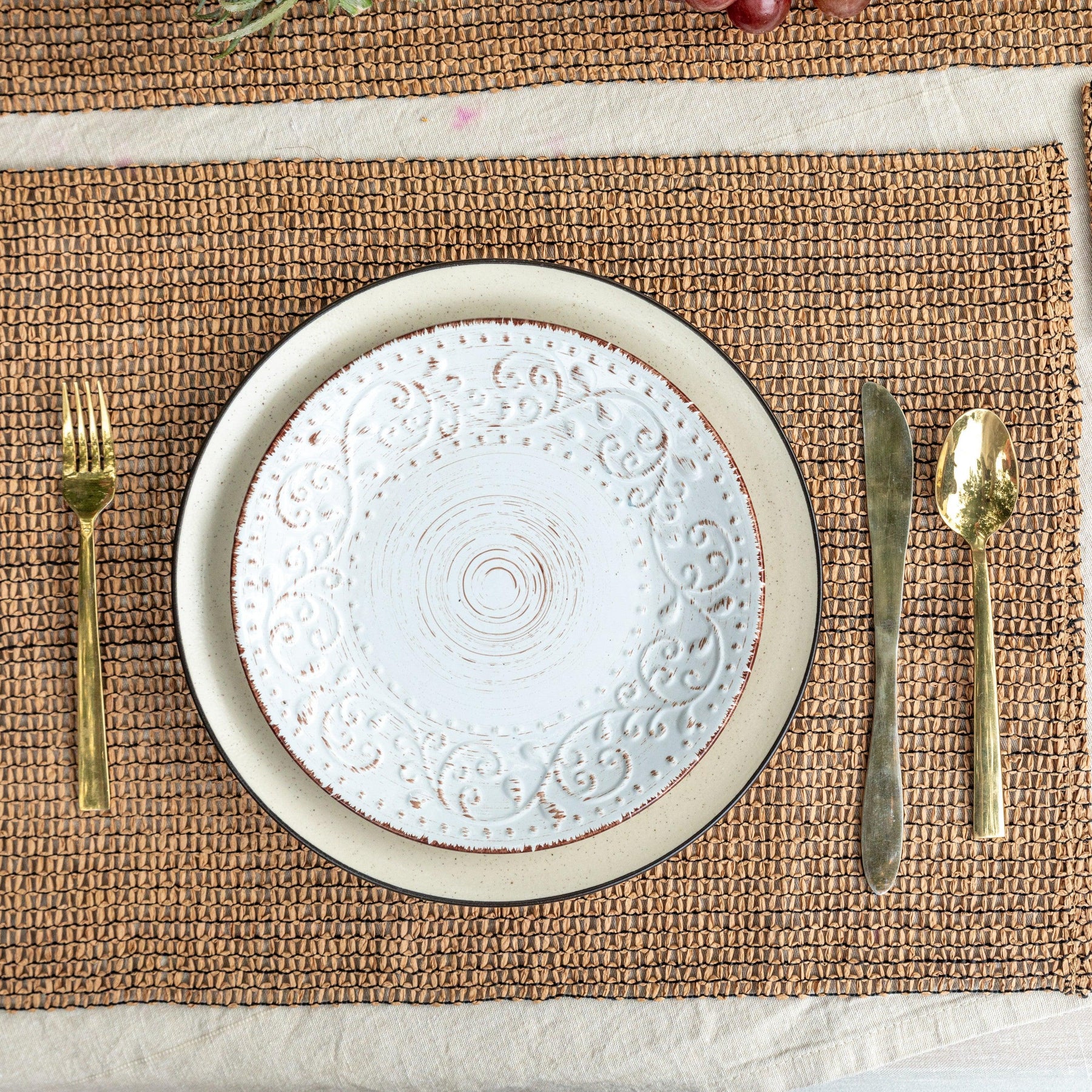 Beige and Black Raffia Natural Table Linen Set-Table Runners-House of Ekam