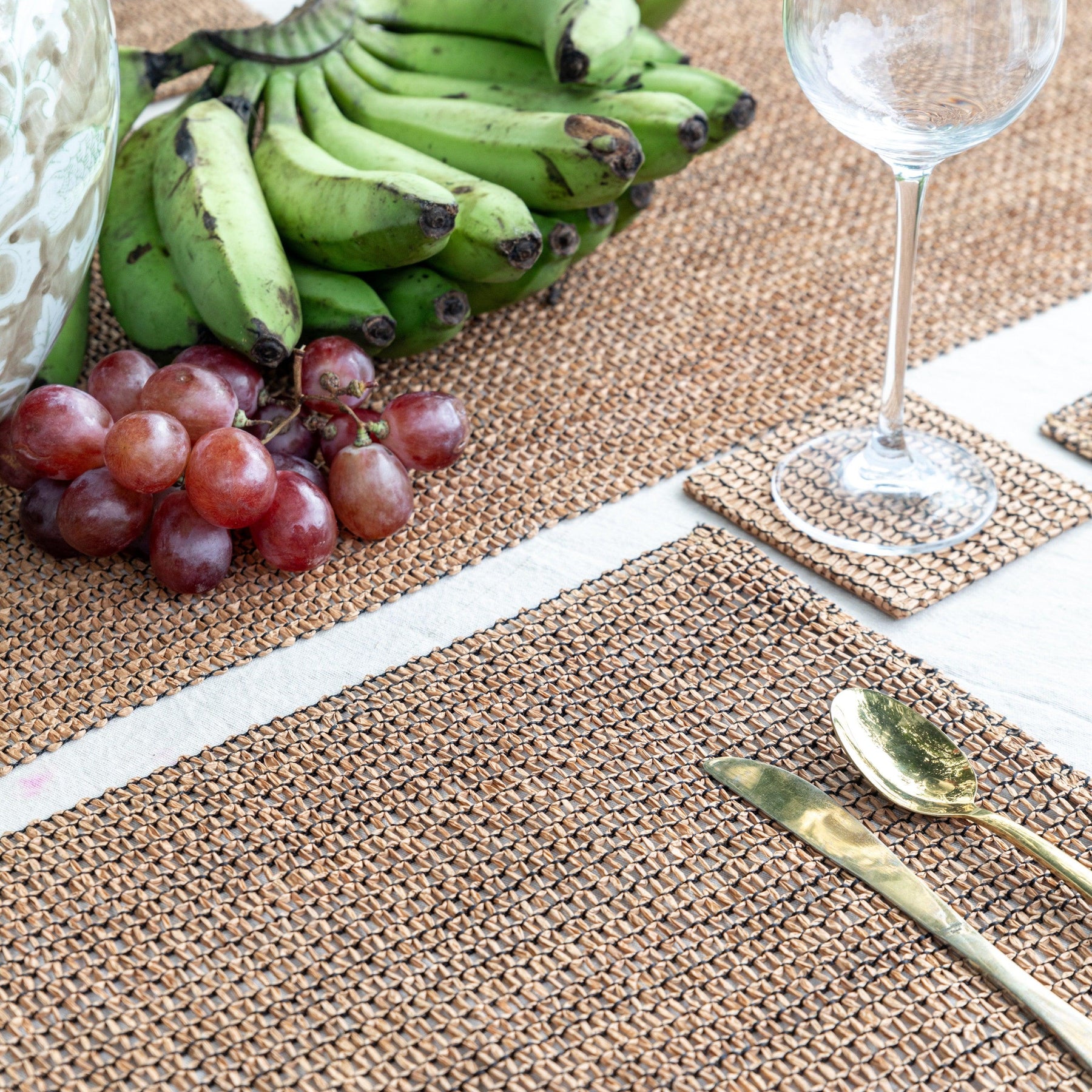 Beige and Black Raffia Natural Table Linen Set
