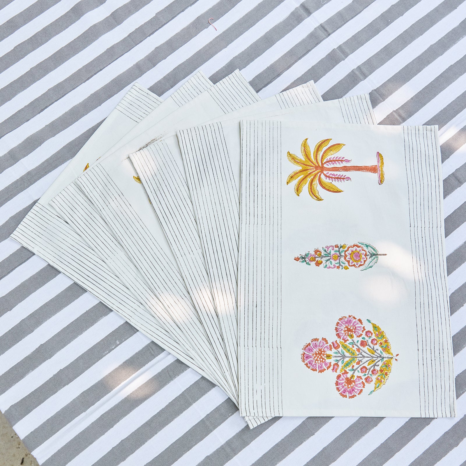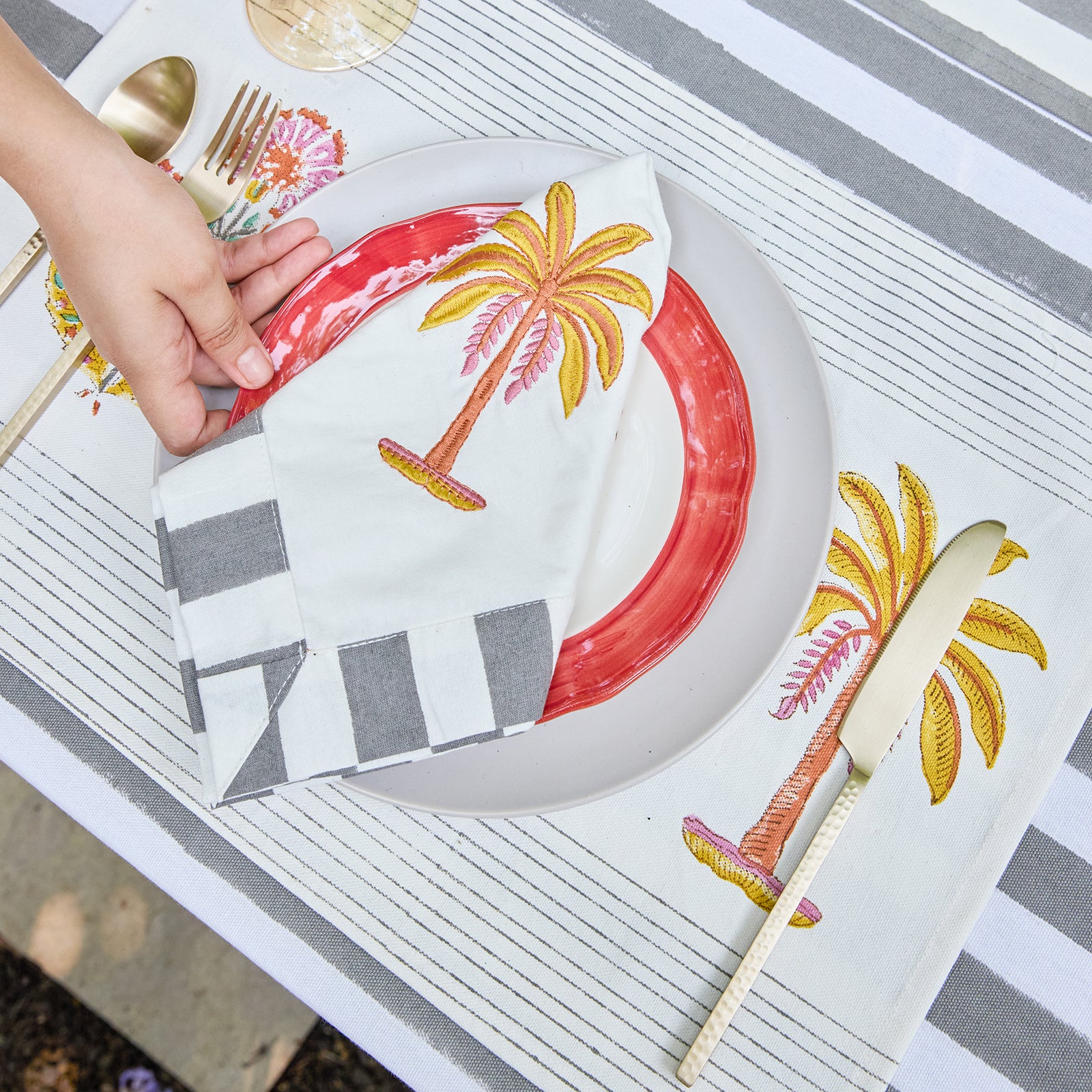 Paired with embroidered napkins featuring delicate palm, cypress, and poppy motifs, the set brings a subtle botanical charm to your table. Each napkin is finished with precise machine embroidery, adding texture and refined detail while staying true to the handcrafted spirit of the collection.