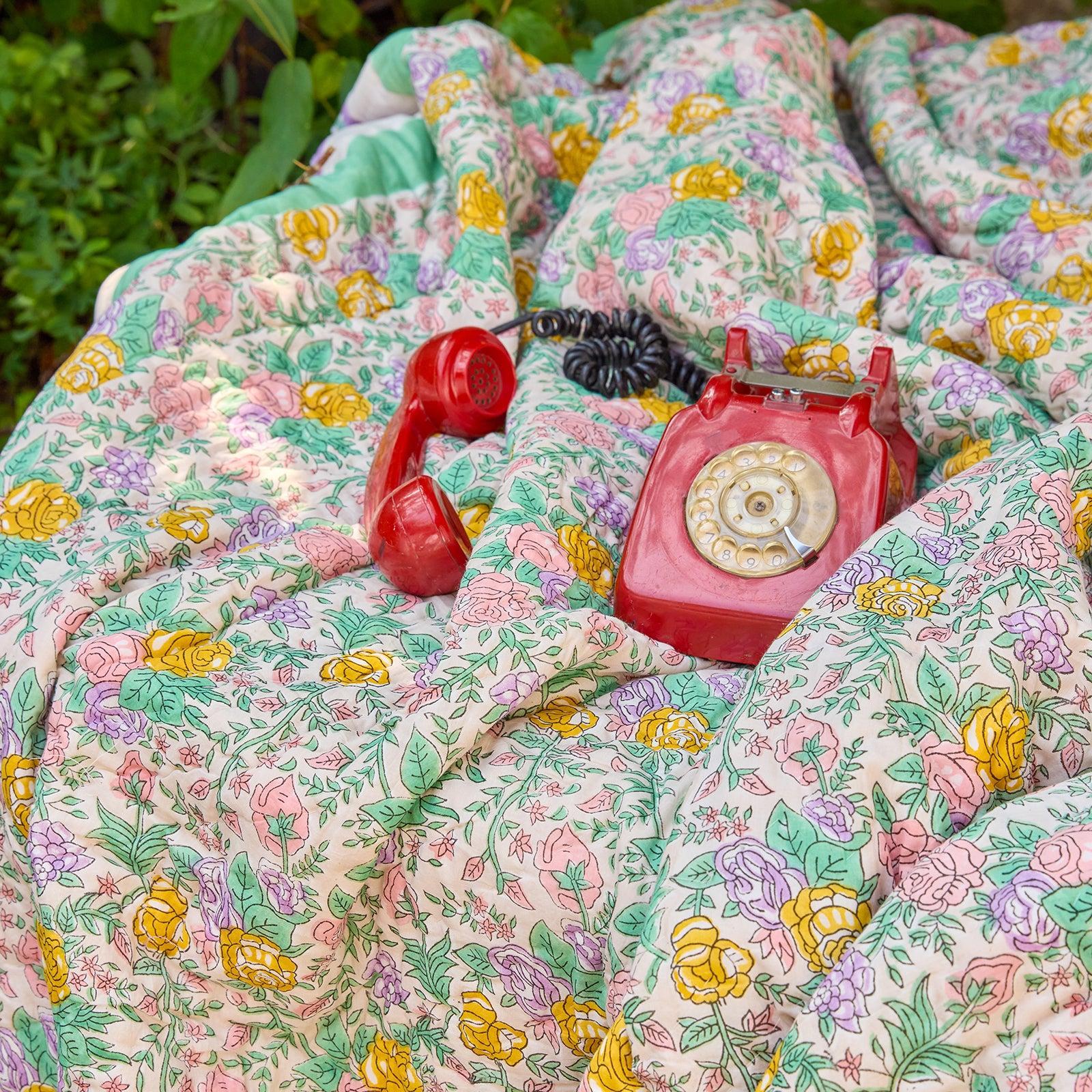 - Blockprinted by hand on 100% cotton mul, filled with cotton batting and hand quilted