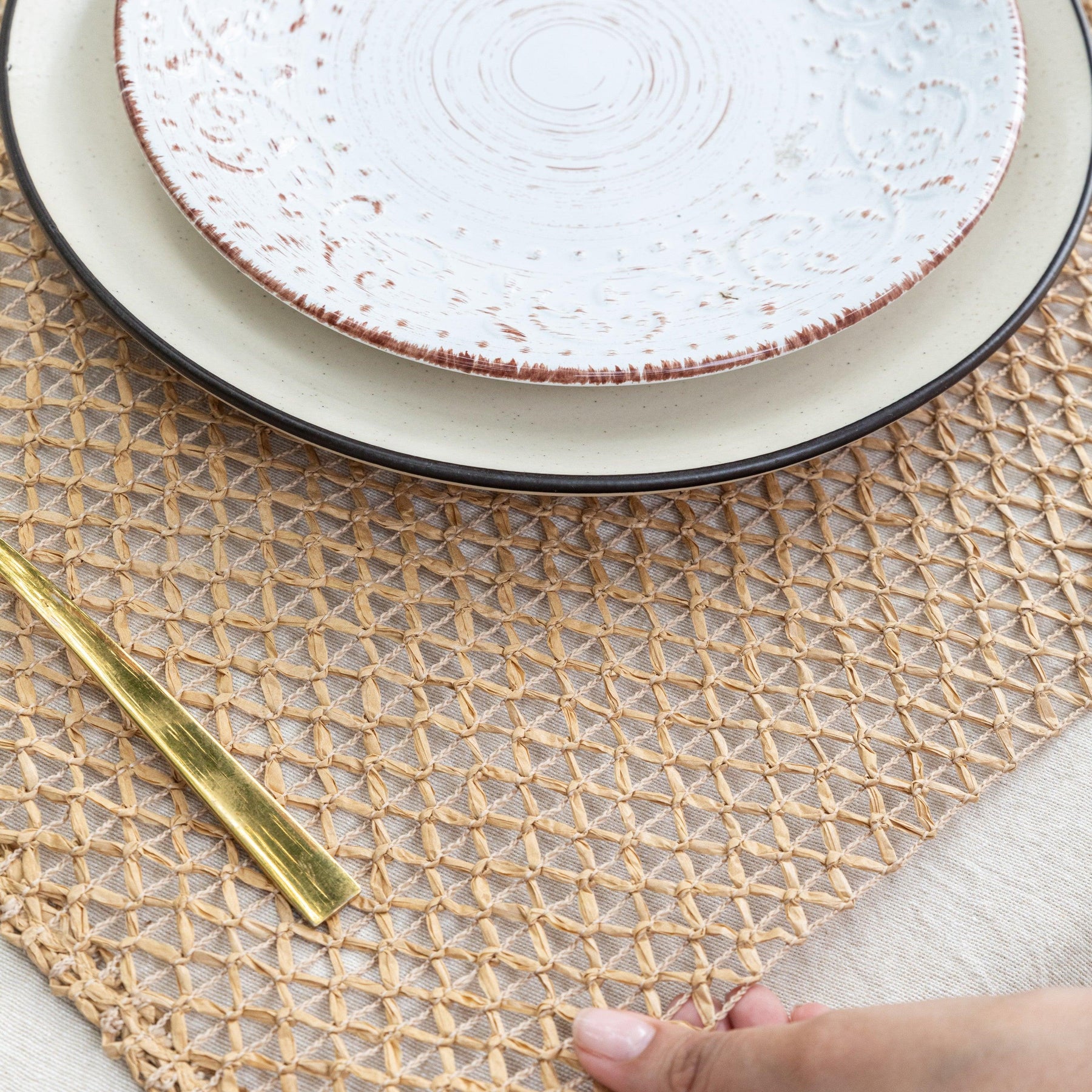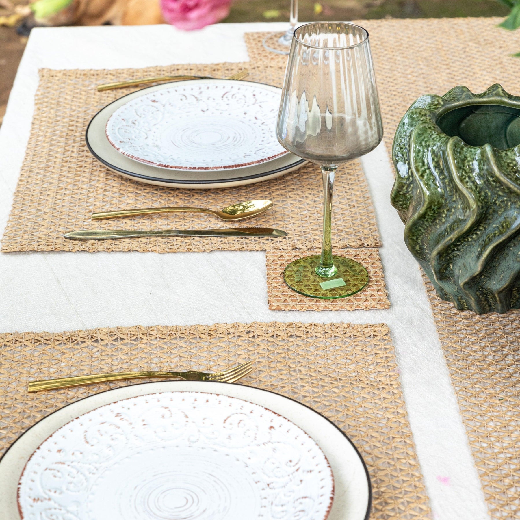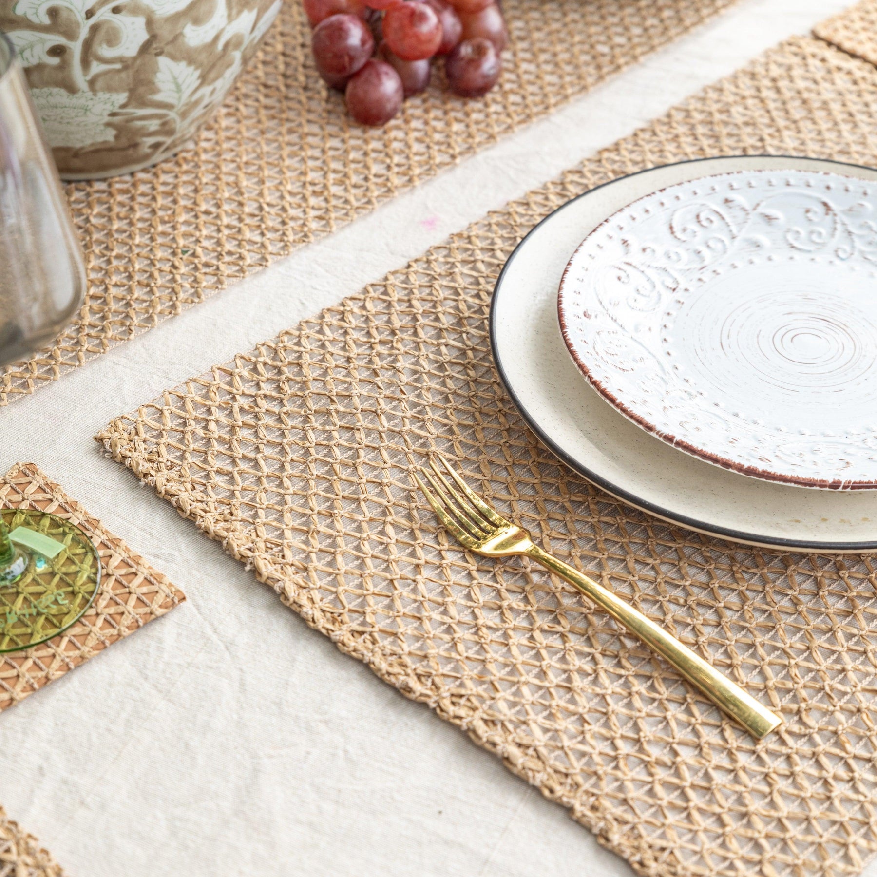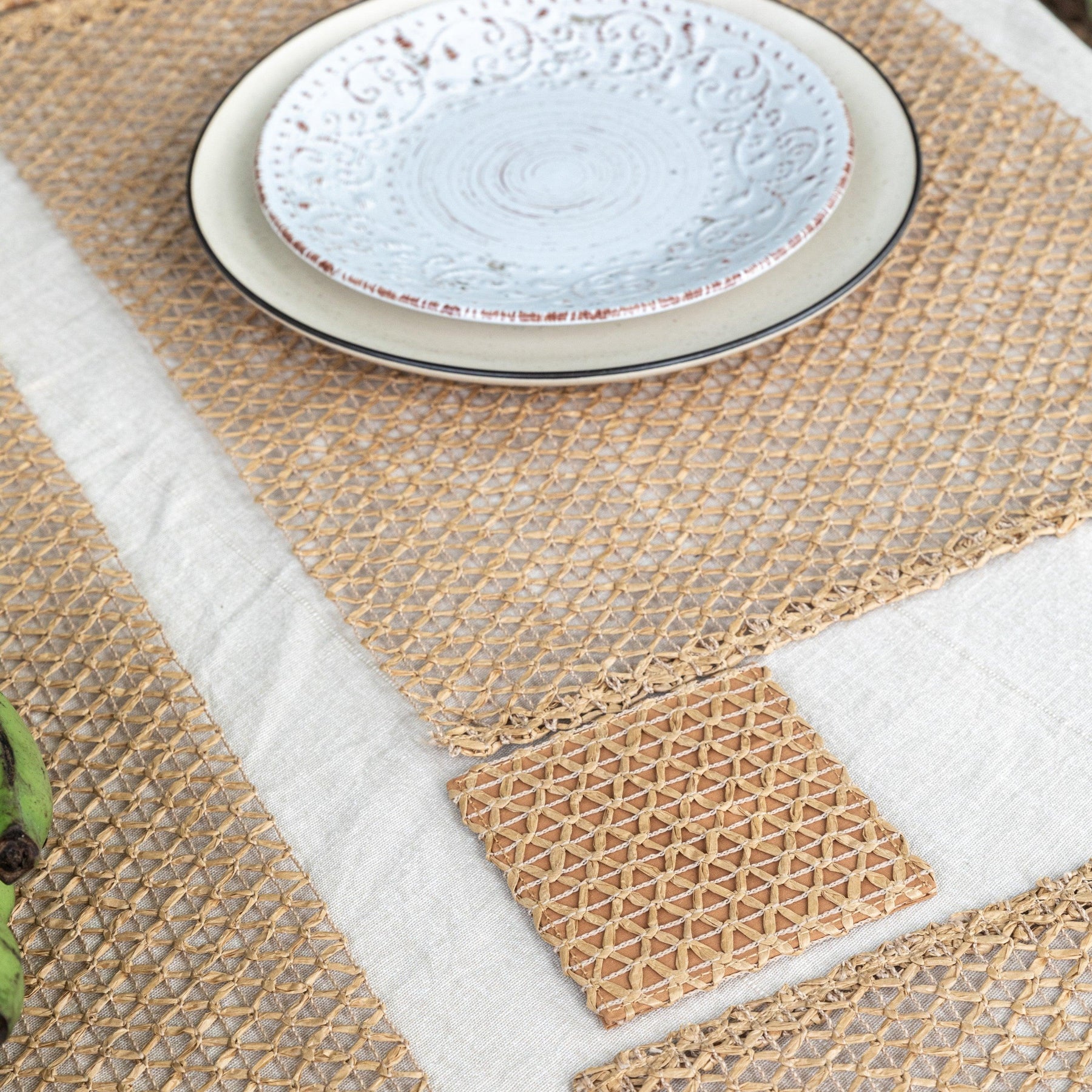 Bring the calm of nature to your dining table with our Raffia Table Linen Collection — a celebration of earthy textures, slow craft, and effortless elegance. Each placemat, table runner, and coaster is crafted from paper affia fiber — a palm fiber loved for its strength, sheen, and organic beauty.