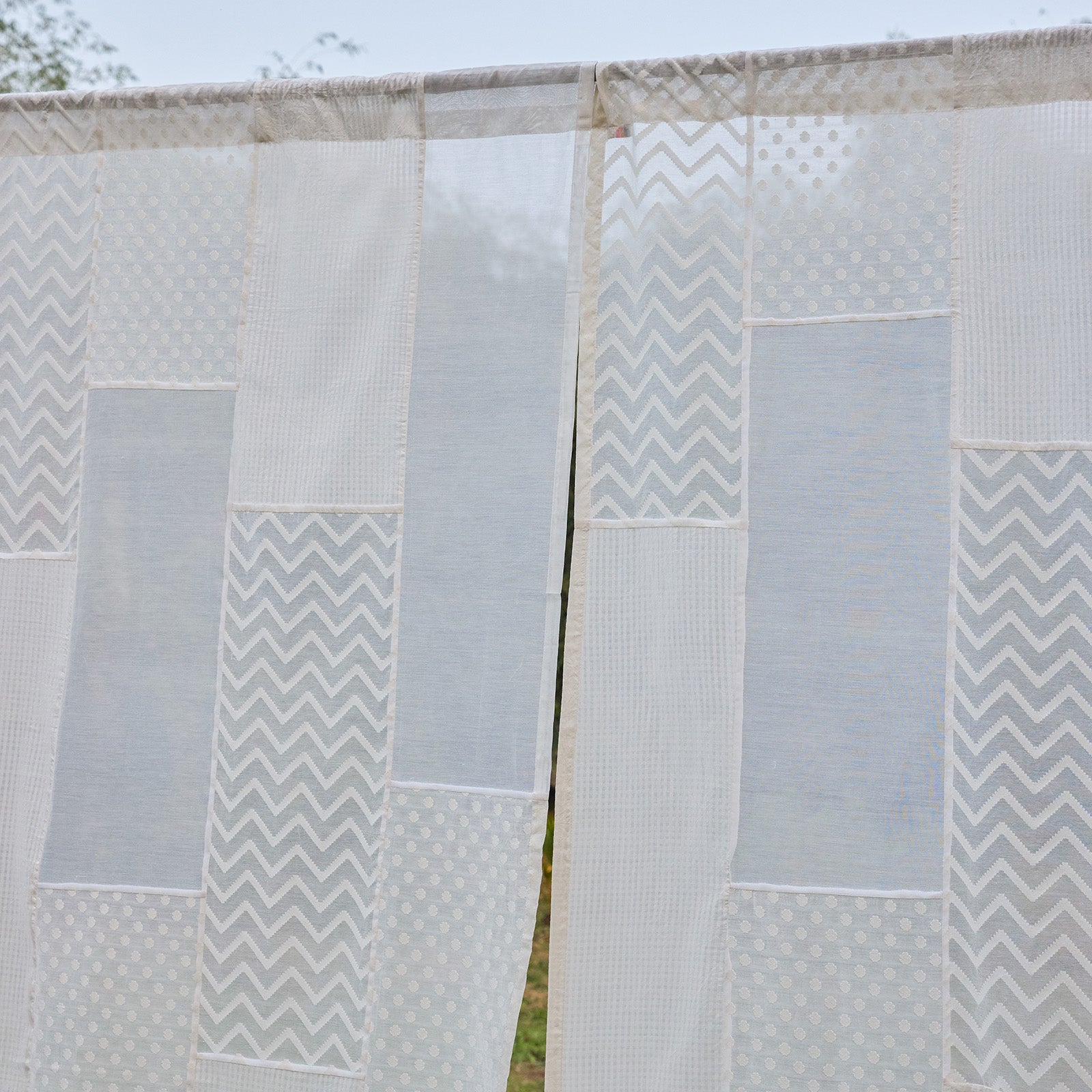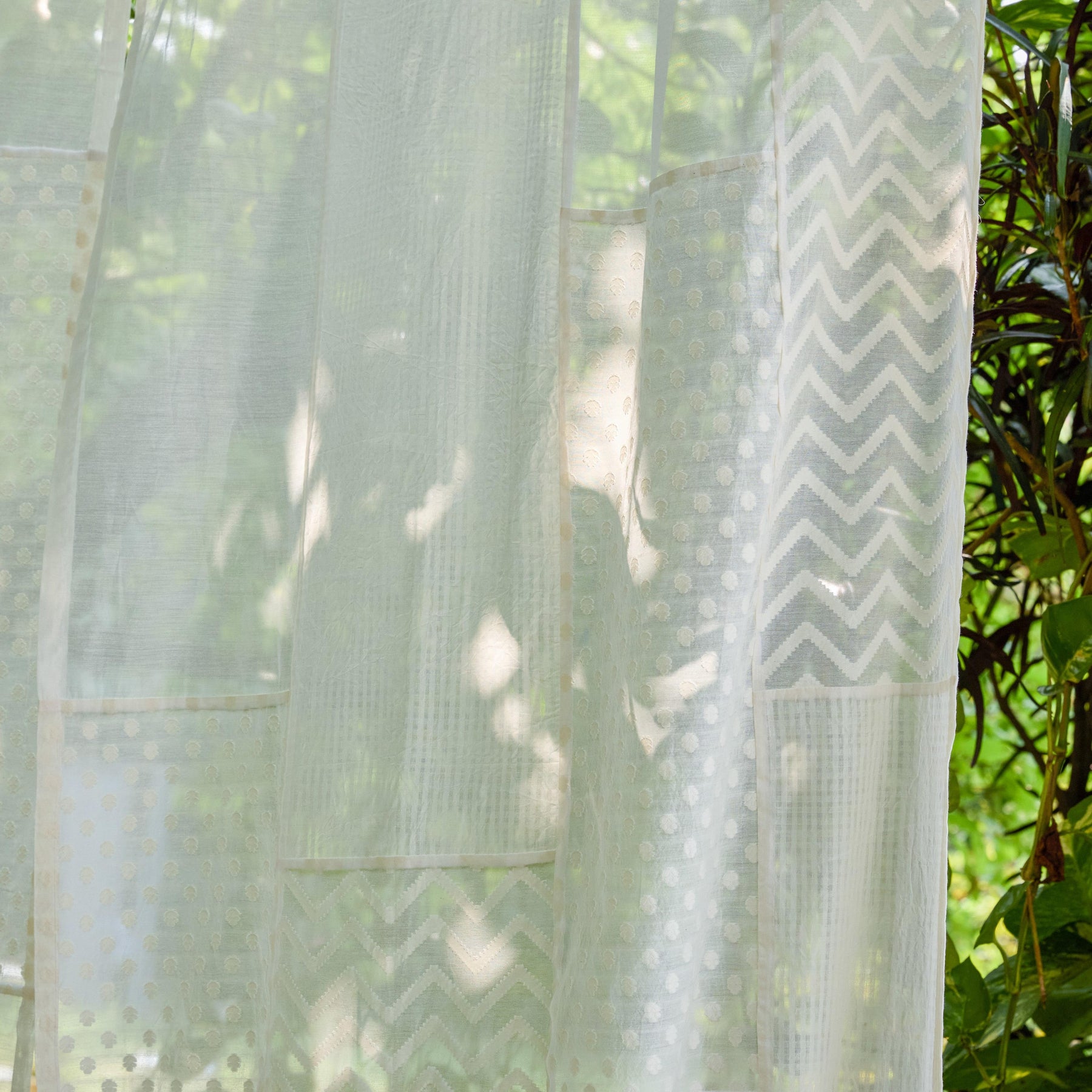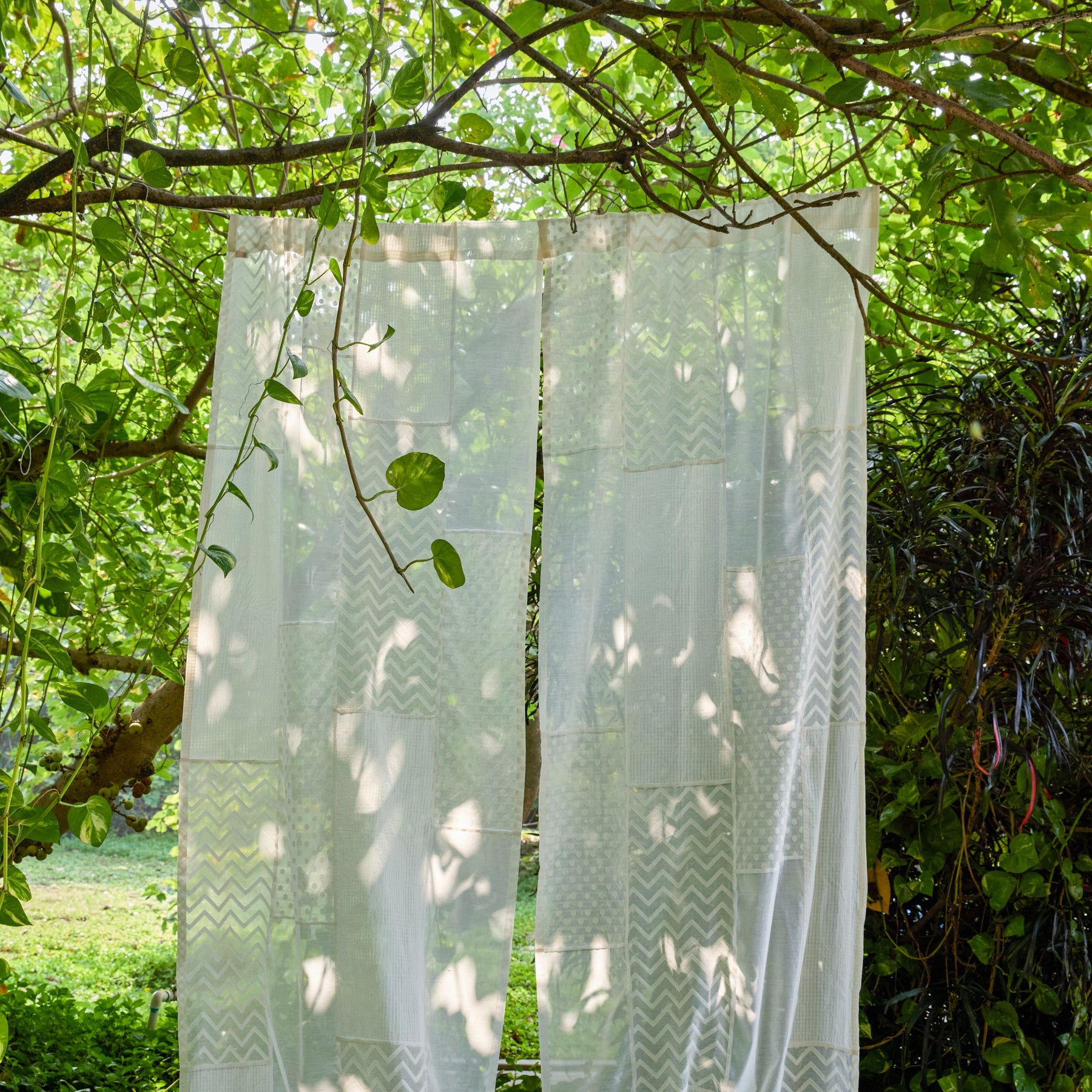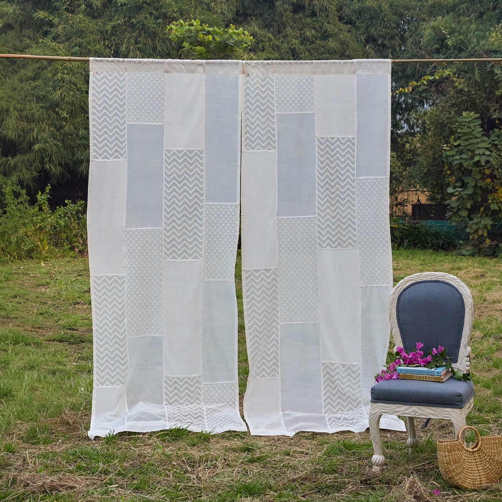 Our White on White Patchwork Curtains are an ode to quiet luxury and mindful craftsmanship. Designed to bring a sense of ethereal calm into your home, these curtains blend multiple subtle patterns into a harmonious composition that feels light, layered, and effortlessly timeless.